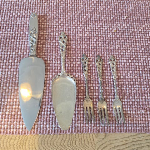 Sølvtøy dobbeltsjekke rokoko.Selges samlet.Pris er fastsatt.