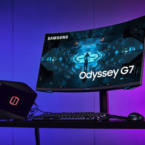 Samsung Odyssey C27G7 27 tommer gamingskjerm med buet/curved skjermdesign. Skjermen er egnet for gaming.
