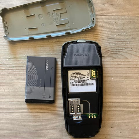Nokia (klappe-) mobiltelefon med Andre minne. En enkel mobiltelefon med klaffdesign, skjerm og tastatur. Leveres med originalt deksel og batteri. Passer for grunnleggende mobilbruk. Selges uten lader