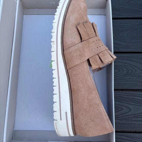 Tamaris mokkasiner og båtsko i størrelse 40. Skoene har snøring og er i en lys farge. Egnet som hverdags- eller fritidssko.