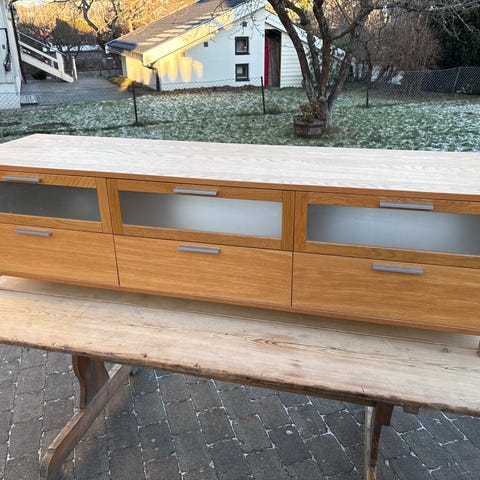 Møbelet fremstår som pent brukt uten åpenbare merker eller skader. Noen svertemerker bak kabelutløpet på toppen av benken, se bilde.