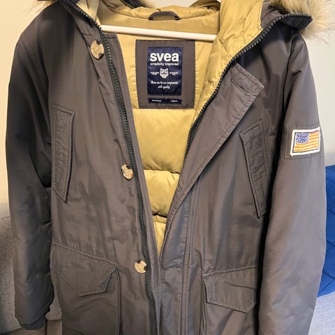 Lengden på jakken er 85 cm i ryggen.