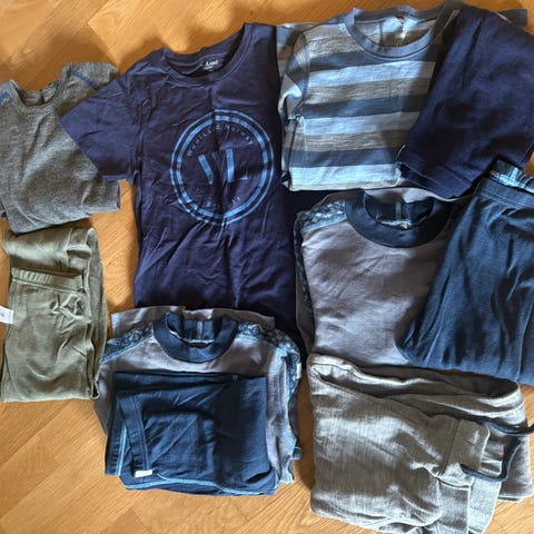 7 overdeler og 7 bukser i ull. Fra merker som Janus, devold, pierre robert, reflex blant annet. Ikke alle er komplette sett, men har lignede farger og kan brukes om hverandre. En tykk Dæhlie ullgenser, ett fleecesett samt to fleecegensere og ei bukse. Masse bruk igjen i klærne.