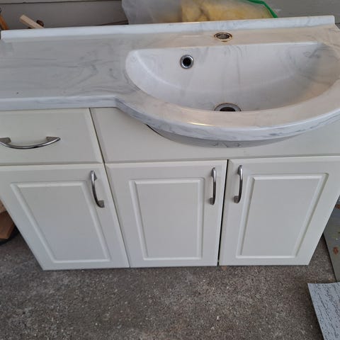 Litt bruksmerker, men funksjonelt. Nederste plate i skap under vask er dårlig, denne bør byttes.