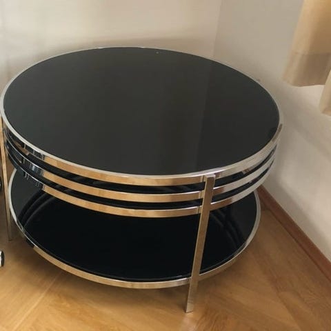 Flott lite rundt glass og metall.