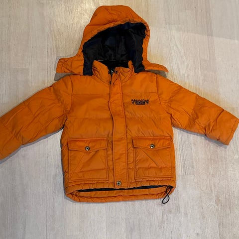 F399. str. 116 RETRO Anorakk m/hette og glidelåslomme (blå) Barn tex. Godt brukt, ingen skader, men hadde en gang en pelskrage, som har blitt borte. 100kr