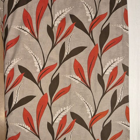 Vi har et sett med 2 gardiner og en teleskopstang som vi gir bort. Gardinene er beige og antageligvis lin (lappen er klippa av). De er 190 cm lange fra toppen og 143 cm brede. Det er 2 gardiner selv om det kun er bilde av én.