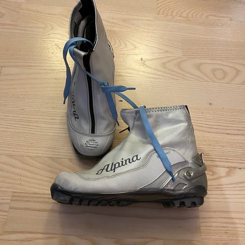 F772. str. 38 Skisko/langrennssko m snøring/glidelås og Veldig mykt/varmt fôr (hvit/grå) Alpina. NNN/Rottefella-binding, Pent brukt. 400kr