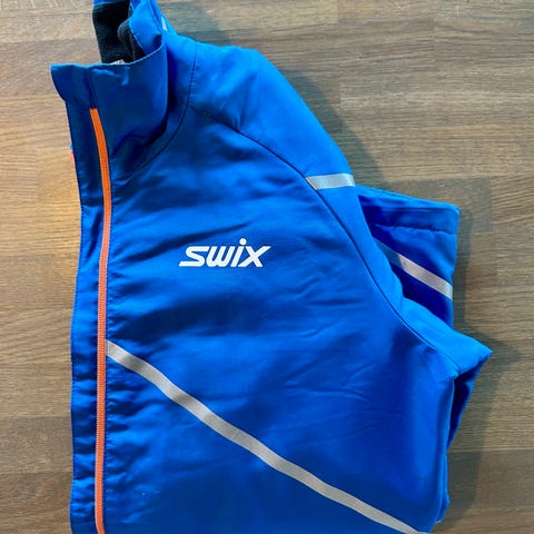F732. str. XS Langrennsjakke/skijakke m/nettingfôr, glidelåslommer, lufting under armene, refleks (rød/hvit/sølv/mørkeblå) SWIX. Fin stand, kun litt merke på logo. 250kr