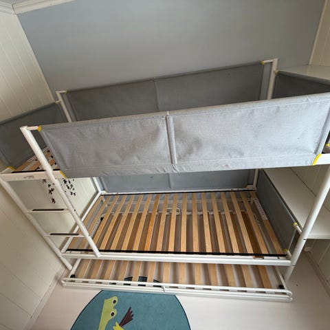 Vanlige bruksmerker, også er det en sprekk i en planke på siden av sengen, men ny planke følger med for å bytte denne når sengen monteres på nytt.