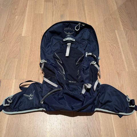 Klassikeren Osprey Talon 22 sekk i blå farge, størrelse M/L (justerbar rygglengde).