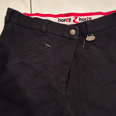 Horze vinterridebukse for dame i blå farge, størrelse 42/44. Buksen har justerbar midje med borrelås og elastisk innvendig linning. Materialet er tilpasset for bruk i kalde forhold.