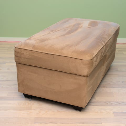 Grå puff i stoff med firkantet form og sorte ben. Passer som tilleggssete eller fotstøtte i stue eller oppholdsrom.