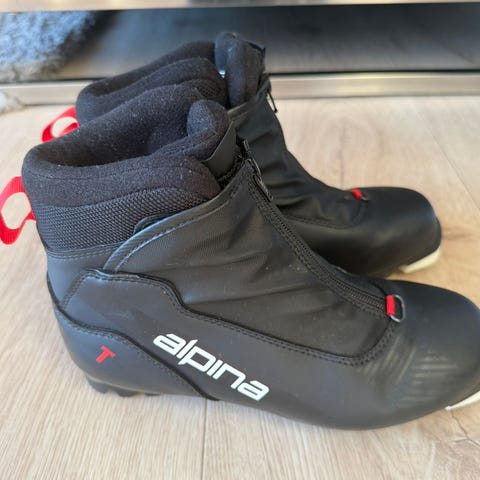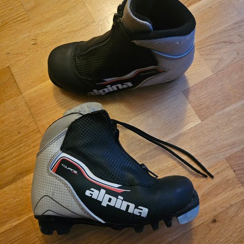 Barne skisko til langrennski. Nesten ikke brukt. Med ullsåle. Står str 36, men jeg synes litt små i str. Må hentes på Kalvskinnet.