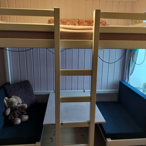 En fin køyeseng som byttes pga bruksendring. Det er en skade helt på den ene siden.