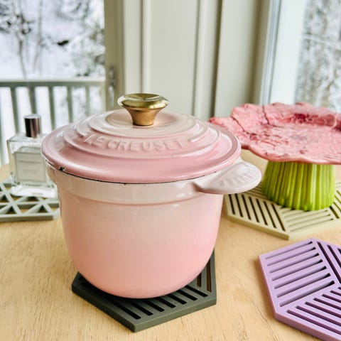 Ubrukt. 18cm/2L. Farge: cerise. Har dessverre ikke esken lenger. Strøken. Gryten har kapasitet til å kunne brukes til forskjellige retter. Den avrundede og kurvede bunnen, den dype hoveddelen og det kuppelformede lokket hjelper rettene dine til å nå nye smaksdybder ved å maksimere varmesikrulasjonen. Det unike designet har et indre lokk i stentøy som forhindrer at vannet koker over når du koker ris. kitchn tilbords bolig styling