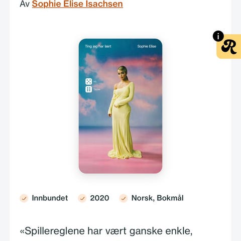 Sophie Elise Isachsen Ting Jeg Har Lært bok. Inneholder personlige refleksjoner og erfaringer. Signert av forfatteren Sophie Elise.