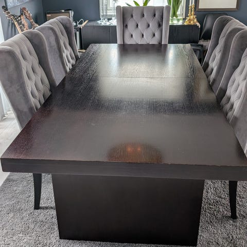 Fint solid spisebord på 195x95 følger med 2 stk ileggsplater på 45cm den ene har skade.Total lengde blir ca 285 cm