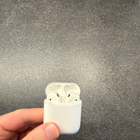 De er meget godt brukt og lydkvaliteten er redusert. Venstre AirPod funker ganske dårlig og har såvidt lyd. Den går også fort tom for strøm. Ellers funker de som de skal:)