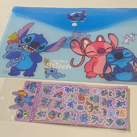 Fargerik klistremerkepakke med den populære karakteren Stitch, kjent og elsket av barn over hele verden. Perfekt til å dekorere skolesaker, notatbøker, nettbrett, drikkeflasker og gaver.