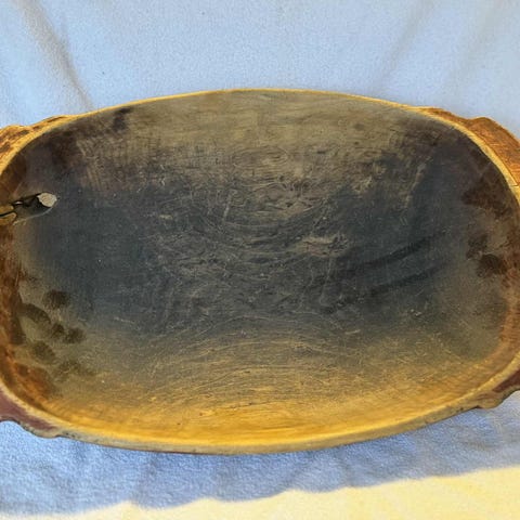 Stort Antikk trau gammelt som har levd sine dager hvet ikke hvor gammelt er det synlig brukt se bilder denne veldig tungt, lengde 84 cm breden 33 cm høyden 14,5 cm jeg ter imot høyest pris må hentes.