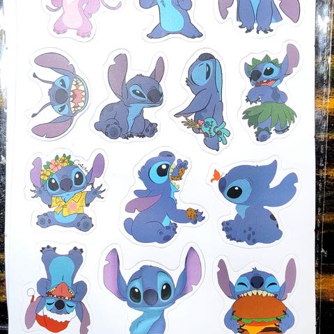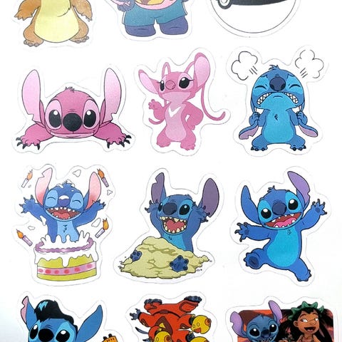 Fargerik klistremerkepakke med den populære karakteren Stitch, kjent og elsket av barn over hele verden. Perfekt til å dekorere skolesaker, notatbøker, nettbrett, drikkeflasker og gaver.