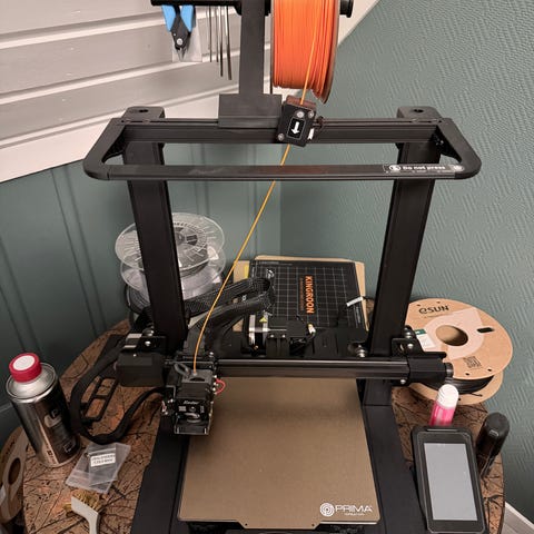 3d Printer. Godt brukt til nybegynner-printer. Ingen synlige skader. Den er oppgradert med creality sprite ekstruder, hovedkort fra bigtreetech, og bigtreetech pi v 1.2 med klipper installert. Den vil ikke koble seg på internett, så det er mest sannsynli btt pi som er gåen. Er ikke sikker, så selges som den er. Men mulig lett å fikse for noen som er handy.