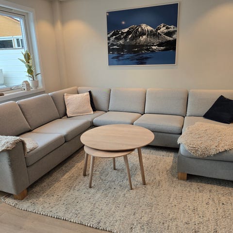Gir bort brukt sofa mot henting. Den kan deles i to deler for enklere frakt. Sofaen er fullt brukbar, men har noen rifter/slitasje – se bilder.