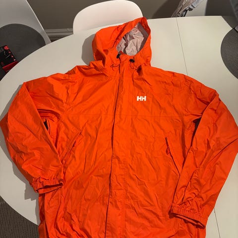Helly Hansen regntøy i størrelse L, svart farge og fleece materiale. Jakken er designet for utendørs bruk og gir beskyttelse mot vær og vind. Høy krage med deilig myk varm fleece (samma fleece i hele jakken unntatt i ermene og lommene. Lommene har en tynn men mykere fleece i seg for varme og komfort. Hette kan pakkes inn bak kragen hvis ønskelig (ikke avtakbar hette)