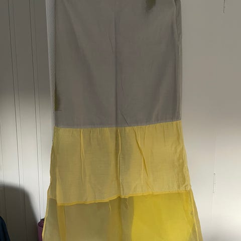Gult skjørt fra Oasis, str 14/40 (L?). Med splitt på begge sider.