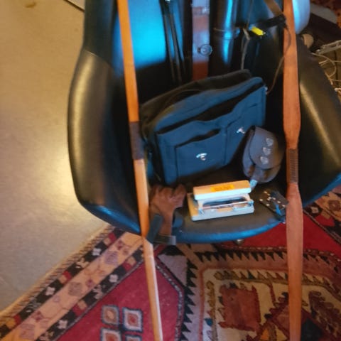 Tradisjonell bue laget i tre med utskåret dekorativt motiv på håndtaket. Buen har en brun farge og inkluderer en streng med flere justeringshull. Egnet for bruk i bueskyting. 140cm