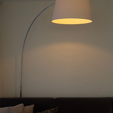 Selger denne 1 år gamle buelampen grunnet flytting. Stor fin lampe som passer under en god takhøyde. Kjøpt hos lampeoglys.no.