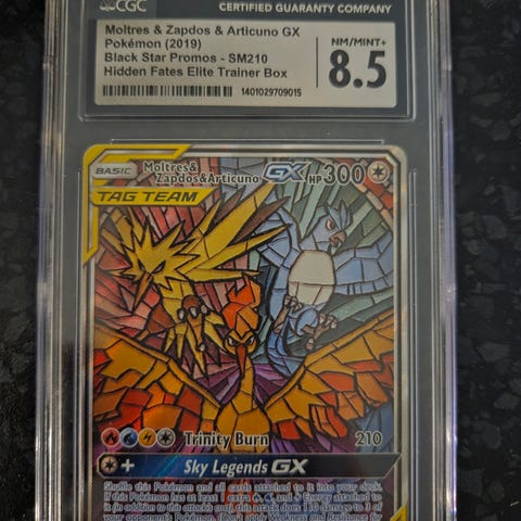Selger Moltres, Zapdos og Articuno GX full art og secret rare fra Hidden Fates.