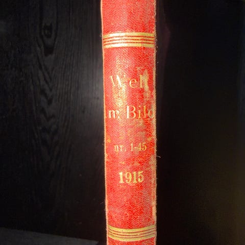 Brevkortalbum fra 1905 med dekorativt omslag og plass til oppbevaring av brevkort. Albumet inneholder flere sider med dekorative rammer for oppsetting av kort. Albumet viser tegn på alder og bruk. Ca 60sider