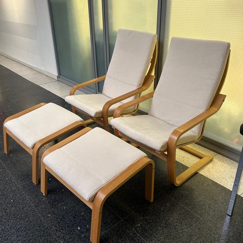 IKEA Poäng hvitbeiset Eikefiner, Gunnared Beige