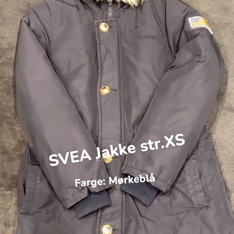 Selger en klassisk mørkeblå vinterjakke fra Svea i modellen Miss Smith. Jakken er varm, vindtett og har den kjente passformen med snøring i livet.