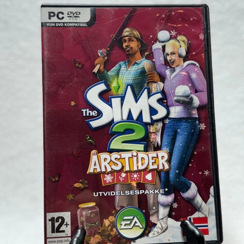 EA The Sims 2 Årstider PC-spill. Utvidelsespakke til The Sims 2 som introduserer årstider med tilhørende værfenomener og aktiviteter. Passer for PC-plattformen.