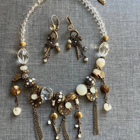 Vintage romantisk smykkesett fra Art’s & Craft. Brukt en gang, og har bare stått i skrinet etter det. Fortsatt veldig fin. Selger som en sett med halskjede, armbånd og øredobber.