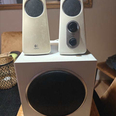 Mine kjære pc høyttalere selges til førstemann som vil ha meget bra lyd og god presis bass for kjempebillig penge. Ulempen er at disse ikke har optisk utgang og bare tilbyr RCA og AUX (minijack).