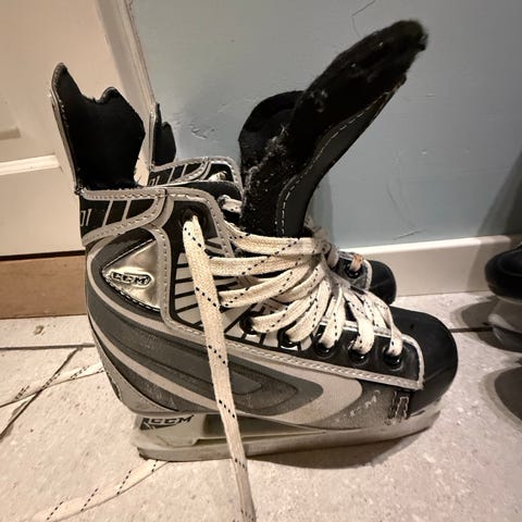 Bauer ishockeyskøyter for barn i størrelse 31. Brukt av gutt på 4 år på hockeyskole. De er synlig brukt, men i bra stand for videre bruk, nylig slipt og med nye voksede lisser. Leveres med 2 sett ekstra såler.