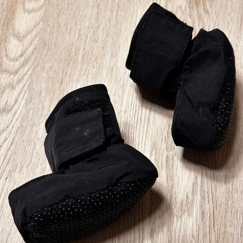 Kjøpt ny av oss og kun brukt noen mnd før de ble for små. Nydelig varme vintersko som holder små føtter varme og tørre