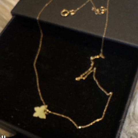 Kjedet er rimelig tynt, og veier kun 2 gram. Stemplet 585.