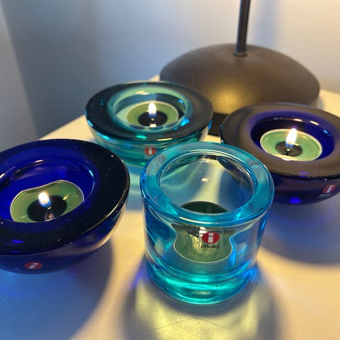 Den minste: ca 5,5 cm diameter og 2,5 cm høy