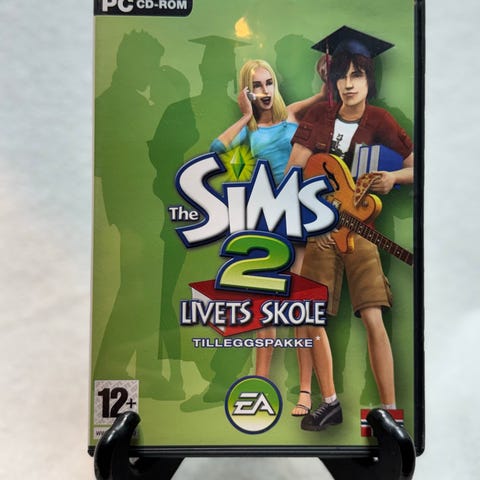 The Sims 2 Livets Skole PC spill. Tilleggsutgave for The Sims 2 som gir nye muligheter for skolegang og sosiale aktiviteter i spillet.