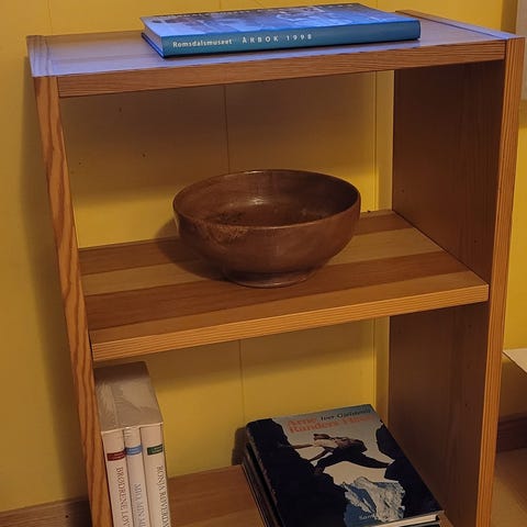 Gammel trekasse, fin som hylle. Solid.