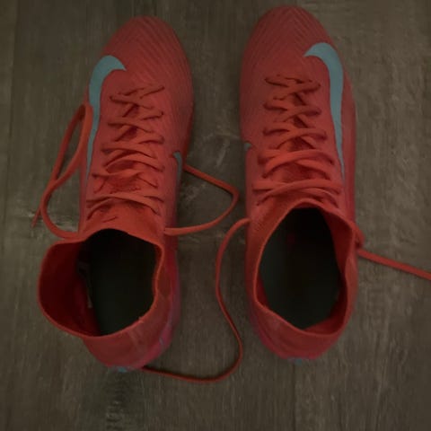 Godt brukte Nike Mercurial fotballsko. Selges da jeg bruker de for lite, men fremdeles veldig mye sko igjen i begge parene. De hvite er mest slitt, mens de rosa er i relativt god stand. Merk at de rosa har en påbegynt skade på ytre knott bakerst på både høyre og venstre, men dette er langt ifra noe problem. Begge parene er i str 43.