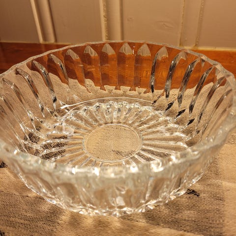 Fin eldre glass skål med hanke,liten skål med lokk selges pr stk 100kr. Jeg kan sende med Post Nord porto blir 69kr.