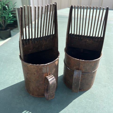 bærplukker, gammel bærplukker, vintage, retro, antikk, metall, blikk, kjøkkenredskap, hytte, dekor, samlerobjekt, blåbærplukker