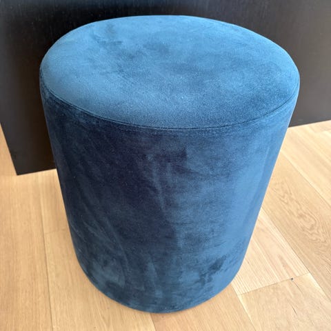 Selger velour puff fra Søstrene Grene i fargen Aqua.