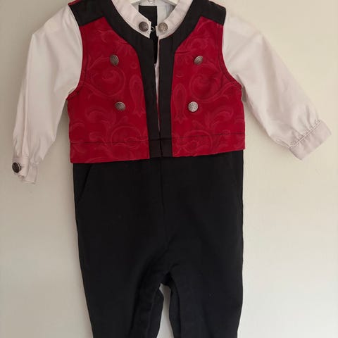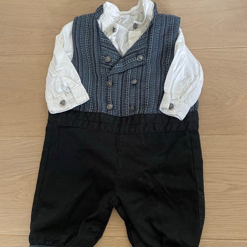 Søt festdrakt til gutt. Størrelse 68 (4-6 mnd) brukt med hvit penskjorte og strømpebukse under (følger ikke med) Hentes på Storevar